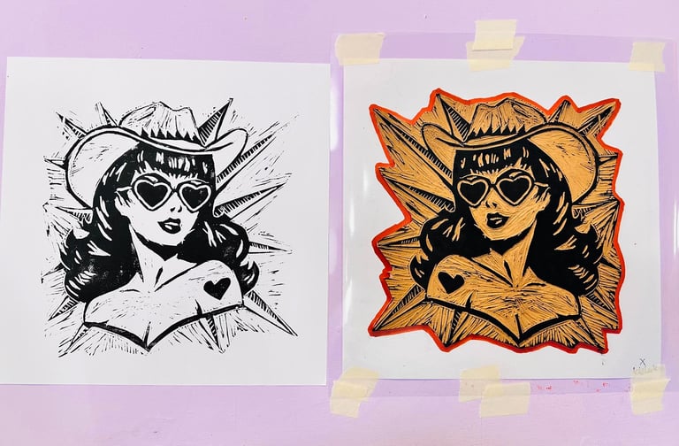 "WEST" LINOGRABADO, TINTA SOBRE PAPEL (COLECCIÓN BOGOTÁ, COLOMBIA) 30X30 CMS-2025